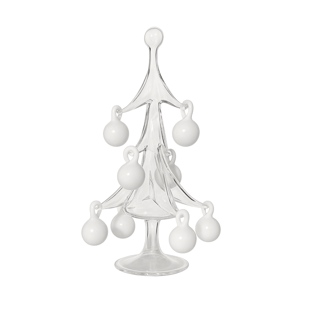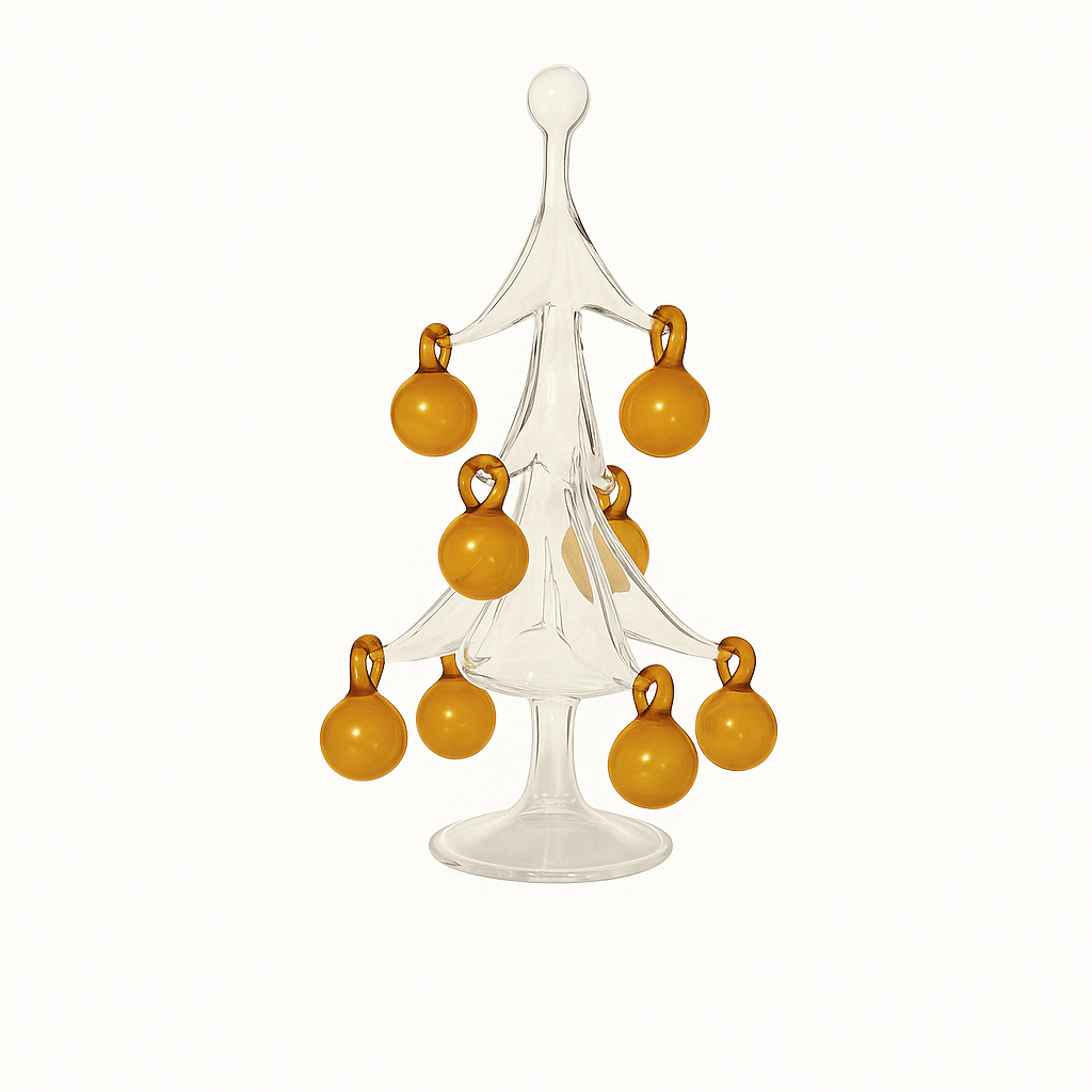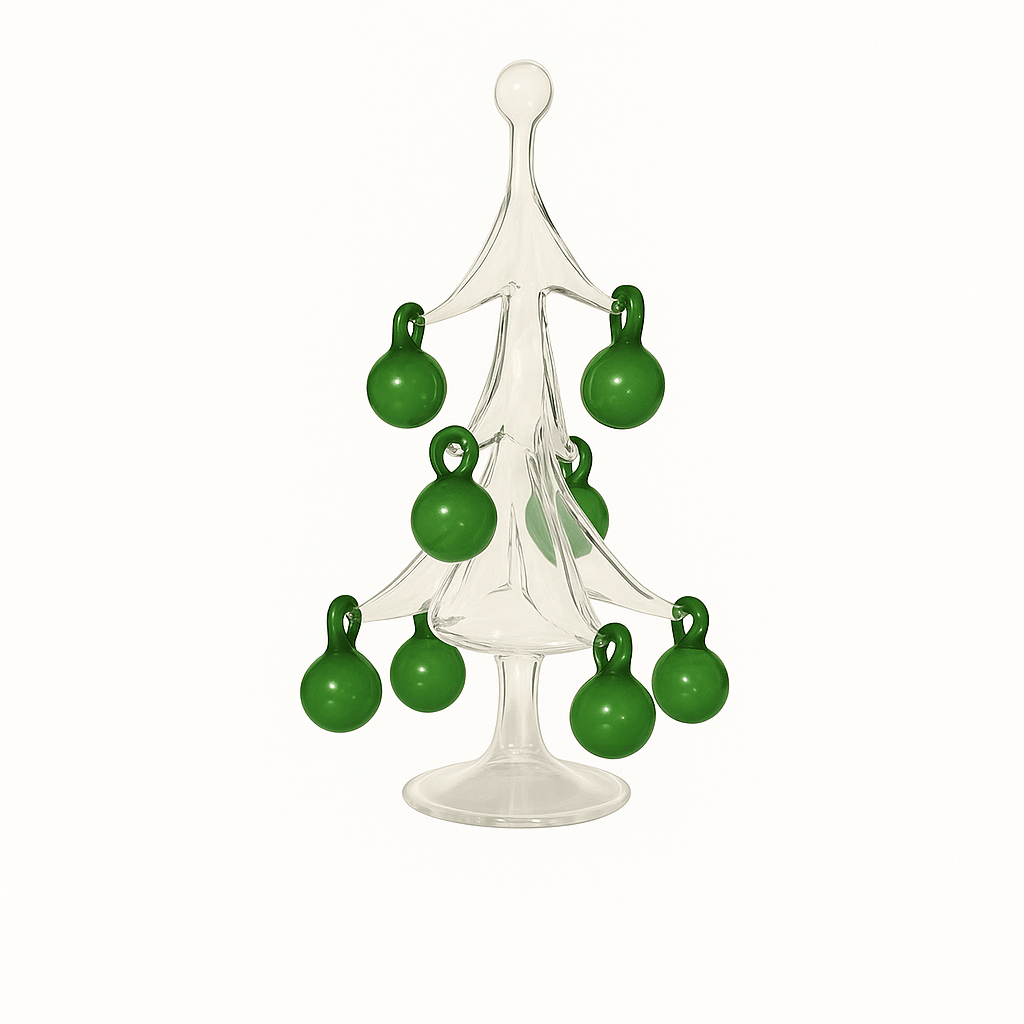 Bradul de Crăciun Sparkle Mini surprinde bucuria sezonului prin măiestrie pură. Fiecare piesă este suflată manual în studioul nostru din București din sticlă borosilicată și echilibrată pe un picior subțire care își ridică ramurile într-o mișcare grațioasă. Forma este realizată în întregime manual, fără matrițe, conferind fiecărui brad propriul caracter liniștit și claritate.